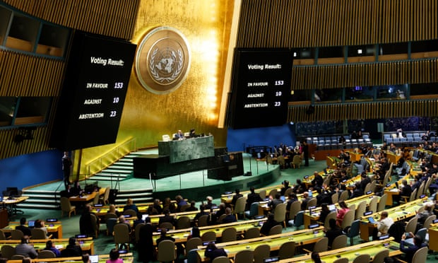 We're still the worst. We're holding up a UN call for peace over one word. We don't like "cessation" and want "suspension" This is going to be translated into all of the languages in the UN. I would wager that in more than half of those languages those two words are the same. In the meantime people die. [Guardian]